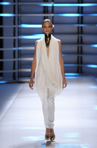 The collection included his highly recognisable draped tailoring, sharp silhouettes, a combination of textures from fur to leather and even sequins. I loved his radically cut gold jewellery and monochromatic colour palette of mainly black and white.